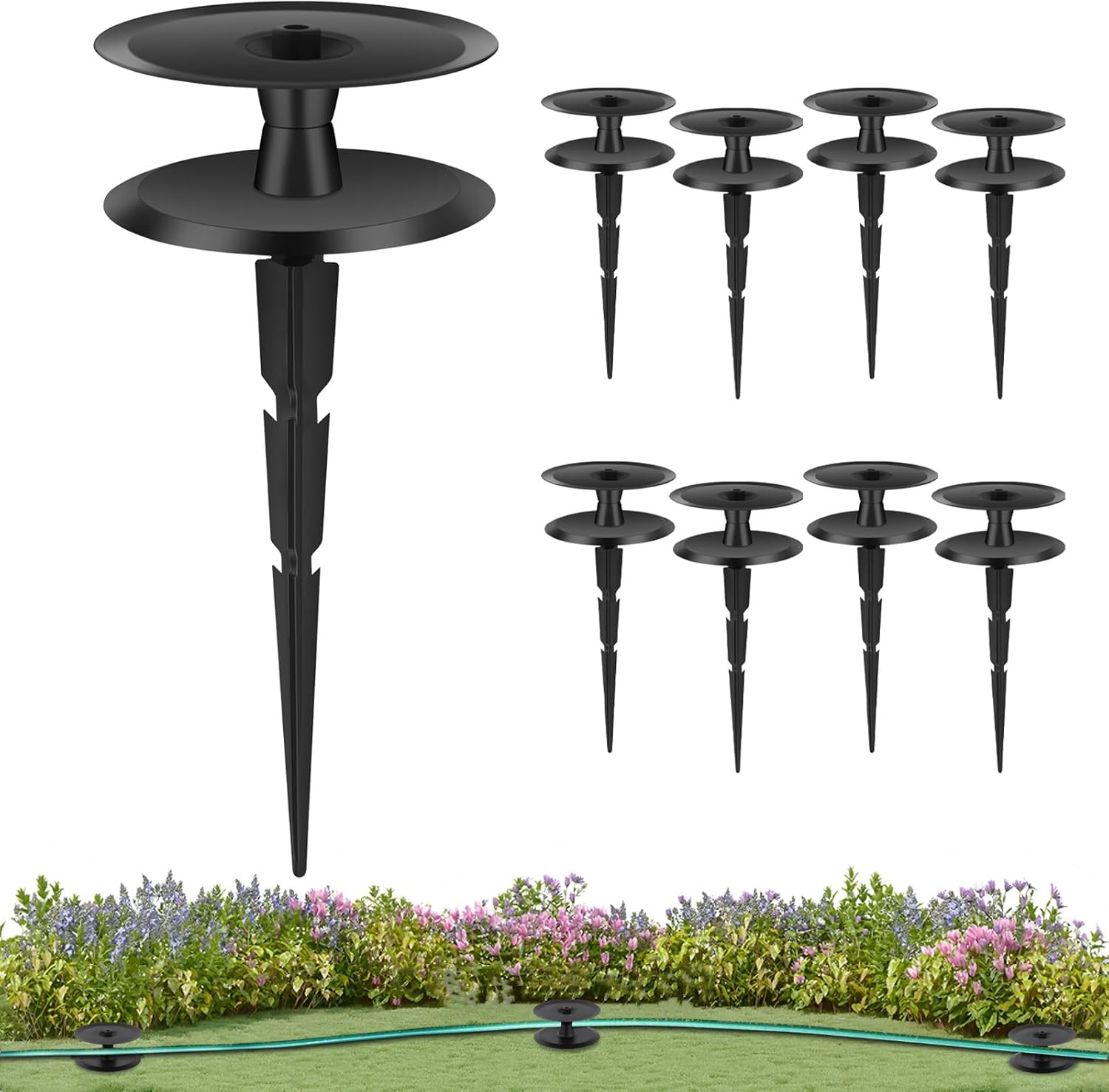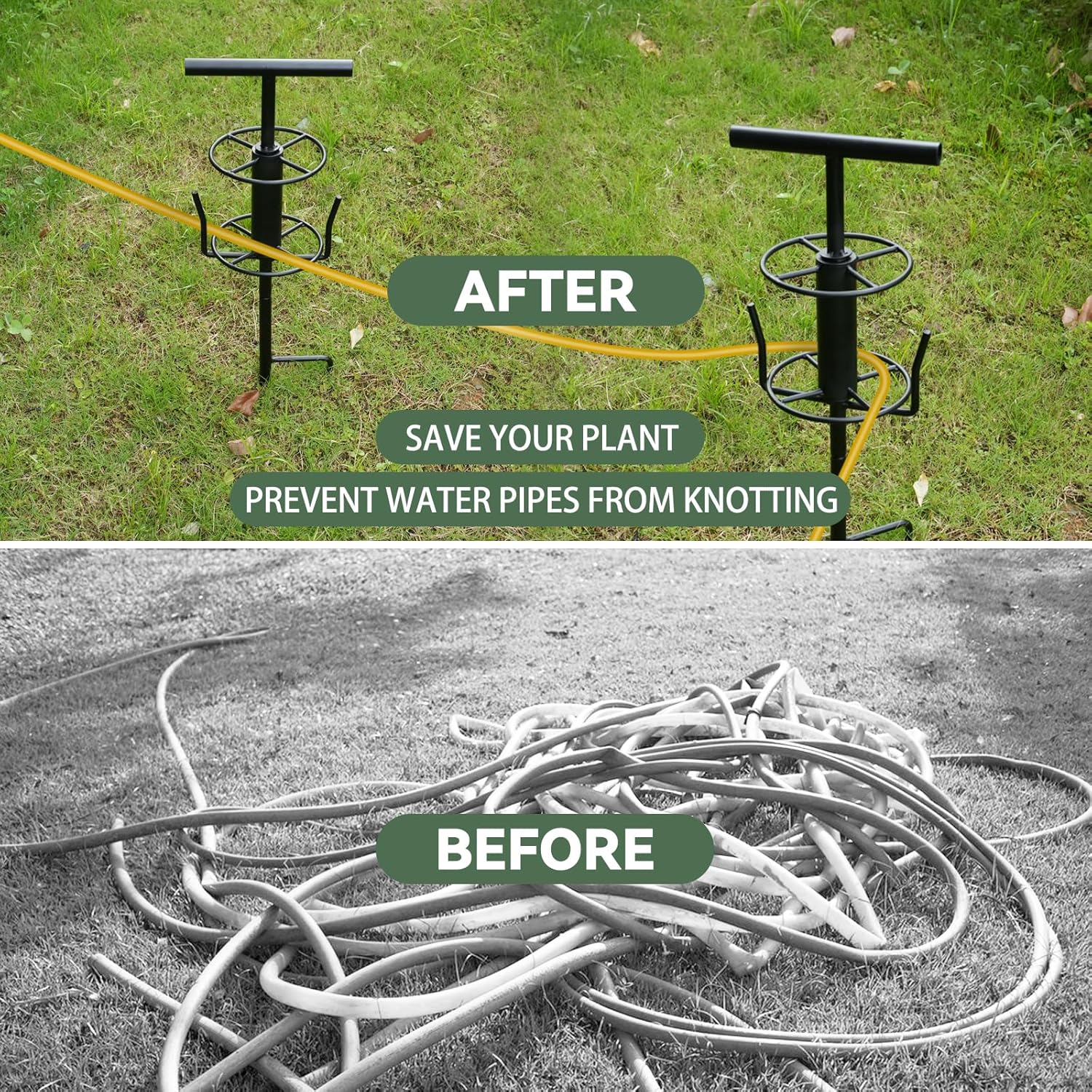 This garden hose guide spike is a useful tool designed to assist in the proper placement and organization of garden hoses.It consists of a sturdy metal spike that can be easily inserted into the ground, providing stability and support for the hose. The main purpose of garden hose spike is to prevent tangling and kinking of the hose, ensuring smooth water flow without any interruptions.By guiding the hose along its designated path, hose guide stakes helps maintain an organized and neat appearance in your garden or yard. Specification: Material: Pure Metal Dimension:Large Color: Black